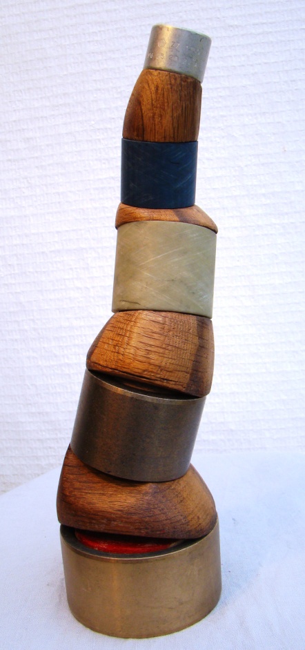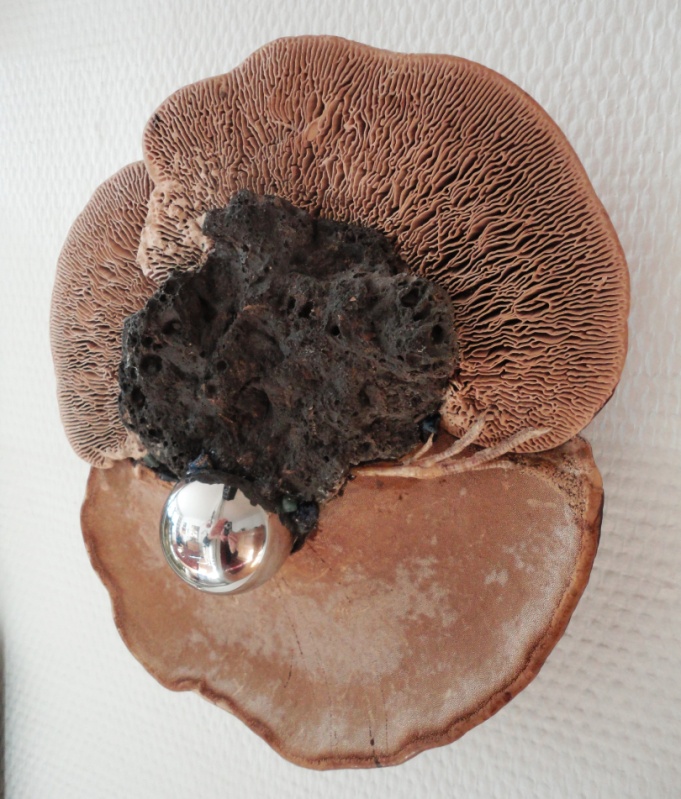 Auf dieser Website die Fotogalerie Neue Arbeiten seit 2013 verdankt sich neuen, interessanten Fundstücken, sie profitiert von Impulsen einer Indienreise und dem Wagnis, technische Artefakte im Kontrast zur bioArtigen Natur zu integrieren (Der blanke Planet). Daher trägt eine Hüft-Endoprothese (danke, F.B.!) mit ihrem Kugelgelenk das Schulterblatt (Scapula) eines Meeressäugers. Und eine Wirbelsäule (Vertebra) schichtet sich aus Gleitlagern (der Fa. Deva, Stadtallendorf!) und „Bandscheiben” aus antikem Eichenholz.