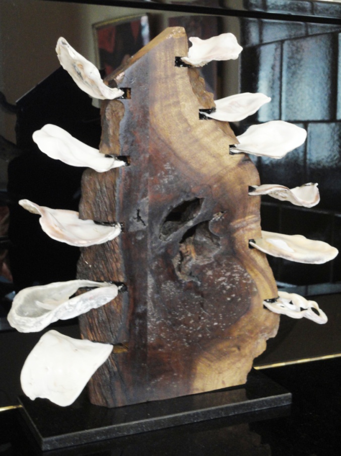 Einige Objekte sind auch ganz frei von angedachtem Sinn und bringen einfach Fundstücke schön zusammen. Manchen Betrachtern sind die am liebsten (Stele I, Stele Indien).Das gilt für die Autumnleaves II, Austernschalen am Stamm aus Stinkwood; s. auch Hände hoch und Figur.